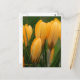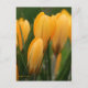 A Spring postcard with orange-yellow crocuses about to open. In the language of flowers, the crocus means cheerfulness, gladness and joy.
