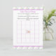 Pretty baby shower Bingo card with an adorable bird and purple and yellow flowers. Perfect for a spring or summer baby shower. The words can be changed to suit your own details or requirements