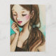 A cute girl with freckles done in watercolour painting art card.