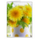 A cheerful bouquet of dandelions in a yellow polkadot vase