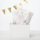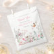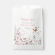 Pretty baby shower favour bag with wildflowers in pink, and cute butterflies. Perfect for a spring or summer baby shower. The words can be changed to suit your own details or requirements