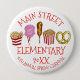 Button design features an original marker illustration of a row of carnival and state fair foods including corndogs, soft prezels, and cotton candy.