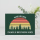 Cool matching family reunion postcard in green for a nature outing at a park or camping trip. These custom cards feature a beautiful vintage sunset over a forest of pretty trees under your personalized text. Invite all of your cousins and relatives out to a fun day outside this spring.