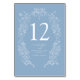 Hand-drawn Spring fleur de lis style elegant framed wedding number with styled spring blooms, leaves, tendrils and little butterflies. In simple classic dusty blue with white lettering and drawing, personalize with your own names and monogram initials and table numbers. Each number required has to be added to the cart one at a time. Other colours and matching items are available or can be created by request. © Original hand drawing and design by Sarah Trett for www.mylittleedenweddings.com on Zazzle.