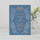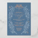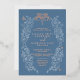 Hand-drawn Spring fleur de lis style elegant framed wedding invitation with styled spring blooms, leaves, tendrils and little butterflies. In grey blue, personalize with your own wedding details and monogram initials up the top. Other colours and matching items are available or can be created by request. © Original hand drawing and design by Sarah Trett for www.mylittleedenweddings.com on Zazzle.