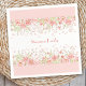Spring paper napkins with a watercolor floral border in peachy pink shades. Easily personalize the text or leave it blank - Kate Eden Art.