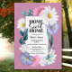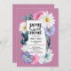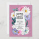 Invite your friends and loved ones to help you celebrate your new home with this spring floral home sweet home housewarming invitation that features a pink border with lavender and pink petunias and white daisies.