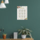 This 9 table Wedding Seating Chart will Make your wedding reception beautiful and help your guests find their assigned tables. Features gold text on a white background with a gold offset squares border and a beautiful spring pastel bouquet of flowers including pink roses, white calla lilies & orchids, and light purple or lavender hydrangea. The text includes the name of the couple and wedding date, and is fully customizable.