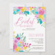 Spring floral watercolor bright cool Bridal shower with pretty painted pink, purple, yellow and blue flowers with green leaves and modern script brush.