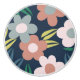 Abstract colourful blooming spring flowers and leaves decoration in pink, blue, green and yellow colours on navy blue background