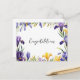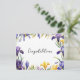 Send your message of congratulations with this pretty postcard. The card displays a border design of purple and yellow spring flowers, with the greeting 'Congratulations' in the otherwise plain white centre. The reverse side of the postcard has the traditional layout for you to write your own message.