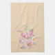 Pink white Spring flowers and a pink butterfly design on the kitchen towel.