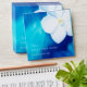 Wedding envelope with Snow-white flower on bright blue clearance water background, azure teal watercolor painting, airy coloured spring or summer spotted floral background. White lily botanical elegant floral blossom Wedding envelope. Spring Fondness Collection.