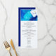 Wedding Menu with Snow-white flower on bright blue clearance water background, azure teal watercolor painting, airy coloured spring or summer spotted floral background. White lily botanical elegant floral blossom Wedding Menu. Spring Fondness Collection.