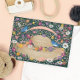 Illustrated sun hat with flowers and two blue birds on custom colour background; editable text inside the ribbon for your event.