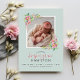 Affordable custom printed baby girl birth announcement photo magnets. This sweet girly design has a pastel floral border with pink and purple flowers and greenery on a mint background. Personalize the design with baby's name, birthday and birth stats and newborn photos. Click Customize It to edit the text fonts and colours and add more photos to create unique one of a kind magnetic birth announcements.