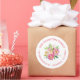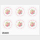 Custom circle return address stickers personalized with your family name and address around a bright pink and green watercolor floral bouquet. Use the design tools to change the background colour and fonts to further customize your own unique design.