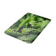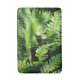A close-up image of spring green ferns illuminated by dappled light through the forest’s canopy.