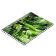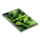 A close-up image of spring green ferns illuminated by dappled light through the forest’s canopy.