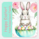 Spring Green Pink Floral Bunny Easter Eggs Square Sticker
