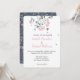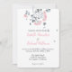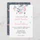 Romantic wedding invitation with pink dandelion and grey leaves falling from the top with a glam grey watercolor pattern on the back.