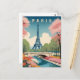 Spring in Paris France Eiffel Tower Retro Travel Postcard