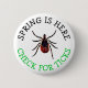 Spring is Here, Check for Ticks Button, great for spreading Lyme disease awareness or to wear at camps or state parks as reminders.