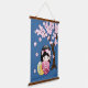 Spring Kokeshi Doll - Cute Japanese Geisha Blue Hanging Tapestry