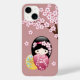Spring Kokeshi Doll - Cute Japanese Geisha on Pink Case-Mate iPhone Case