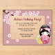 Spring Kokeshi Pink Transparent Window Birthday Acrylic Invitations