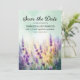 Beautiful springtime/summer wedding Save the Date card with purple lavender floral. Personalized with your photo on the back. Purchase printed copies or order digital to share with friends and family through email or on your social media.