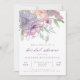 A pretty bridal shower invitation with watercolor flowers in lilac and pink, with green leaves. "bridal shower" is in modern calligraphy font. The reverse features a pattern of watercolor pastel flowers.
