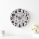This wall clock has a design of repeating blocks of lines that that cross each other in pink, darker pink, light green, darker green, cream, and black. If you like the design but prefer different colours, message me.