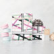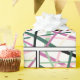 This wrapping paper has a design of repeating blocks of lines that that cross each other in pink, darker pink, light green, darker green, cream, and black. If you like the design but prefer different colours, message me.