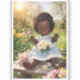 This lovingly designed motif captures the pure carefree joy of a radiant spring morning. A charming vintage doll sits amidst a sea of colorful tulips and daisies, as the warm morning sun shines through the blossoming fruit trees.