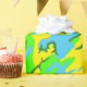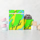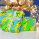 Camouflage pattern gift wrap in bright yellow, blue and green.