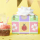 Pastel pink, yellow, purple, and green squares are adorned with ladybugs, dogwood blossoms, daisies, and honeybee and then bordered by tight white stitching to create a fun and sweet spring patch-like pattern.