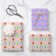 Pastel pink, yellow, purple, and green squares are adorned with ladybugs, dogwood blossoms, daisies, and honeybees and then bordered by tight white stitching to create a fun and sweet spring patch-like pattern. Two sheets in this set feature the patch pattern alone, while the third sheet features a pattern of watering cans decorated with the patch pattern on a pastel purple background to give you options and variety for your gift wrapping or DIY projects.