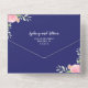 This spring peony navy and white wedding all in one invitation is perfect for an elegant wedding. The modern spring or summer design has a rustic country feel, featuring elegant watercolor pastel pink peonies and sage green leaves on a navy background.