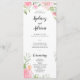 This spring peony wedding program is perfect for a classy wedding. The modern spring or summer design features elegant watercolor pastel pink peonies and sage green leaves with a rustic country look.
