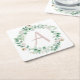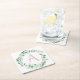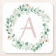Spring peony wreath with letter customisable square paper coaster