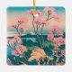 Spring Picnic under Cherry Tree Flowers Mount Fuji Ceramic Ornament