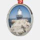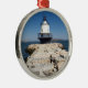 An elegant round ornament with a silver coloured frame around an image of the Spring Point Ledge lighthouse. This lighthouse is located near the Portland head lighthouse and city of Portland. ME
