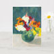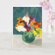 A birthday card with an original oil pastel painting of a posy of spring flowers, wallflowers and forget-me-nots.