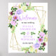 This beautiful and elegant wedding welcome sign features watercolor purple flowers and foliage. The text combines handwritten script and serif fonts for a stylish and modern look. This is perfect for a spring rustic wedding.