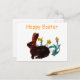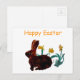 With a Spring scene featuring a cute bunny rabbit sitting amongst daffodil flowers. From my original glass painting, includes the text Happy Easter, which can be changed for any occasion ©Annabel Potter