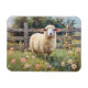 A delightful painting of a spring sheep surrounded by colourful wildflowers in a serene meadow. The soft textures and vibrant hues bring a peaceful, pastoral charm to this rustic countryside scene.
