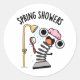 Spring Showers Funny Season Pun features a cute metal spring taking a shower. Perfect pun gift for family and friends who love cute weather season puns.
