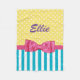 A cute and colourful spring coloured fleece blanket with turquoise stripes and yellow polka dots designed just for the girly girl with a bright personality. This girly design is embellished with a bright pink ribbon tied into a stylish bow. Personalize by adding your name in chic purple. Flat printed image, NOT actual ribbon.