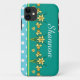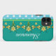 A very pretty Case-Mate Case to personalize for your iPhone 5/5s smartphone, with a border pattern of Golden Yellow Daffodils and White Polka Dots on Sky Blue; part of the Posh and Painterly "Spring Sunshine" collection.